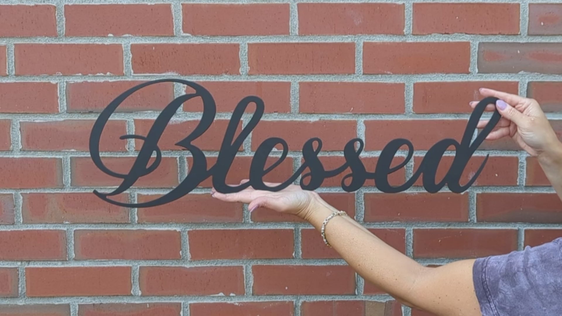 This metal inspirational “Blessed” sign is a perfect addition to any room in your home. Use this sign as a daily reminder to count your blessings. Cut from 16 gauge steel, this sign is light weight, sturdy, and will mount perfectly from its 2 rear hanging wall brackets. This sign measures 8.25" x 26.50".