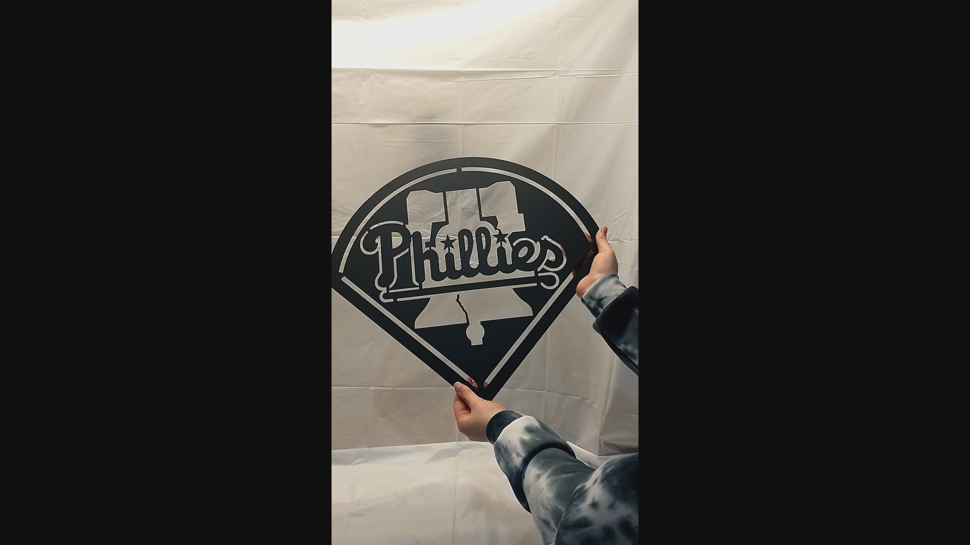 For all of you Philadelphia sports fans out there, our Phillies sign!  Fun Fact:  The Phillies are the oldest continuously run, single-name, single-city franchise in American professional sports. Whether you are a season ticket holder, a tailgating fan, or just love watching the game from the comfort of your own home, there is no denying the excitement of the game. This sign in RED is one of the most vibrant signs we have made to date.  The color, the size, the strength and the design are all on point.   Perfect for the bar, the sports den, the cave, she shed, or wherever you want to show your love for your team.  This sign is a HOME RUN for sure! Love ALL Philadelphia sports teams?  Check out our Flyers, Eagles and 76ers signs too!   Made from 16 gauge steel and measuring 17" x 18.25" this sign can be hung anywhere using the attached hanger on the back side. Choose from glossy bright red or a satin black.