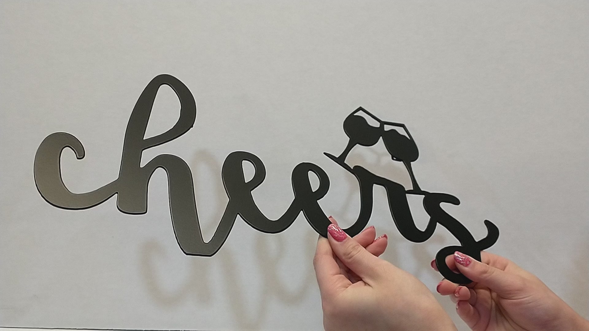Cheers Script with Glasses Metal Sign is crafted from premium 16-gauge steel, precision cut for lasting quality. Perfect as personalized wall art, home décor, or a unique gift for family and friends.
