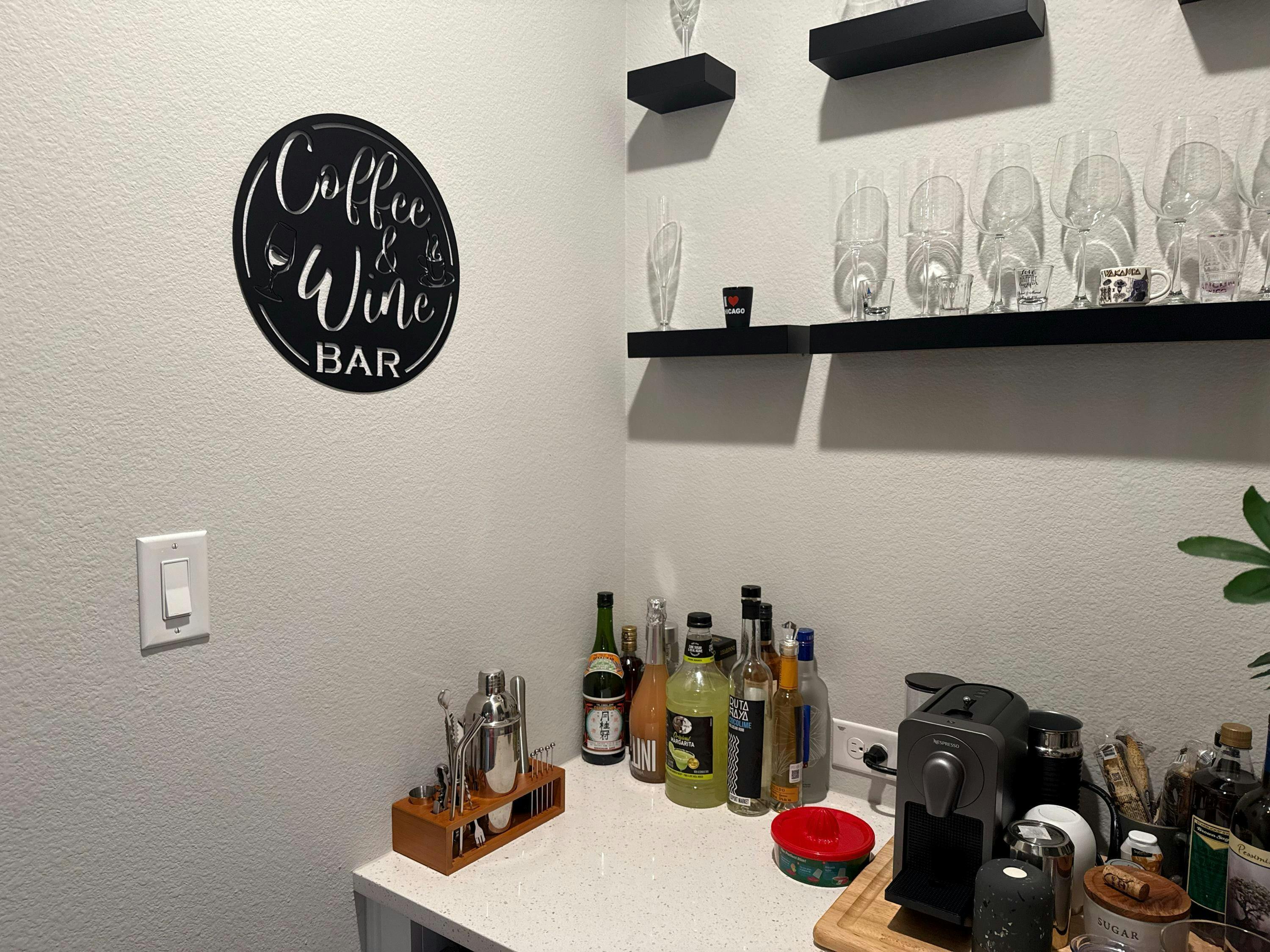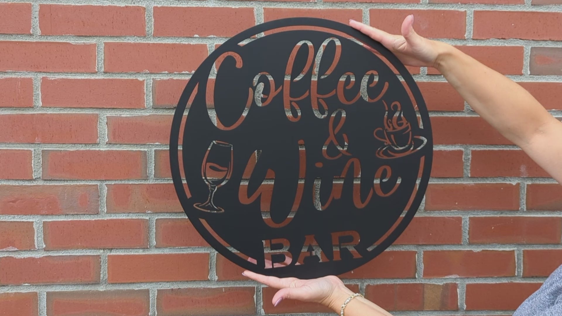 Coffee & Wine Bar Round Metal Wall Sign is crafted from premium 16-gauge steel, precision cut for lasting quality. Perfect as personalized wall art, home décor, or a unique gift for family and friends.